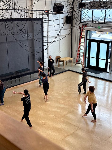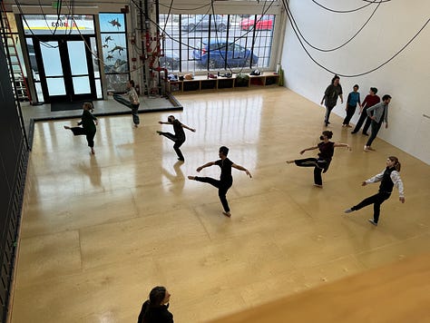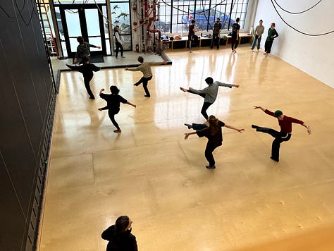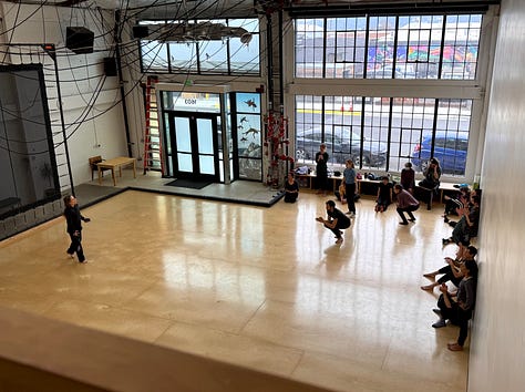 I had the great privilege the following morning of attending (observing) a dance class by Randee Paufve at Bandaloop studios in West Oakland. Randee has been living and teaching in the Bay Area for the better part of her adult life and over 30 plus years has built a robust community of dancers that look up to her and value being in her field. I got a rare opportunity to just witness and be in that field on Thursday morning and it was equal parts calming and electrifying.